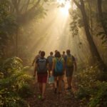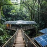 File name: green-travel-destinations-2026-hero.jpg Description: A smiling thirty-something woman with a reusable water bottle standing on a wooden boardwalk in Costa Rica’s cloud forest at sunrise. Behind her, a small eco-lodge with solar panels peeks through the trees. Soft golden light, misty air, feeling of calm and hope. Caption: This is what green travel in 2026 actually looks like — beautiful, easy, and genuinely good for the planet.